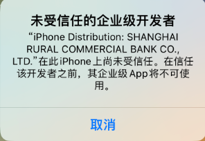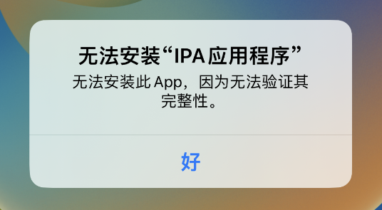 3、无法安装“IPA应用程序”,无法安装此App,因为无法验证其完整性。